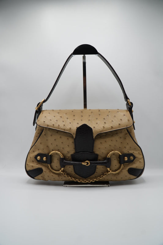 Gucci by tom ford Brown Ostrich Horsebit Shoulder Bag