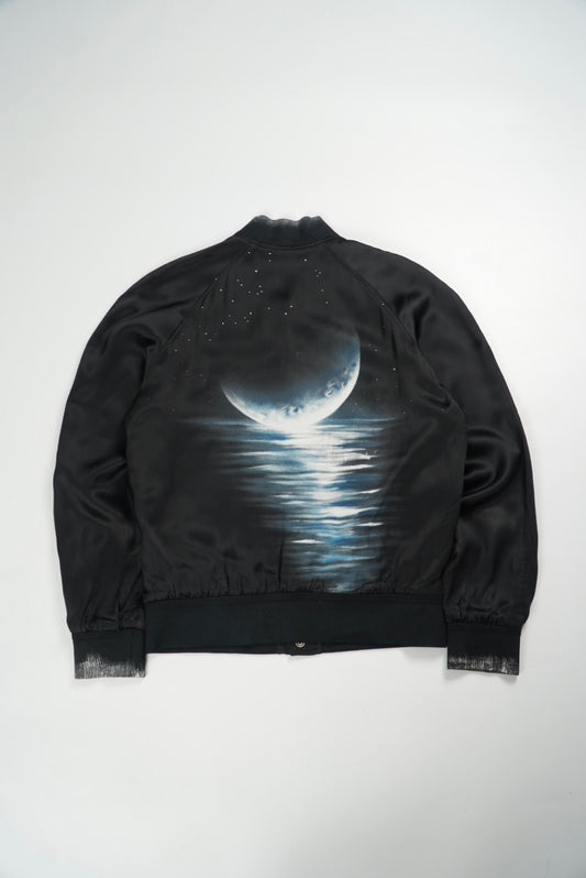 Balmain Palm Tree-Print Satin Bomber Jacket
