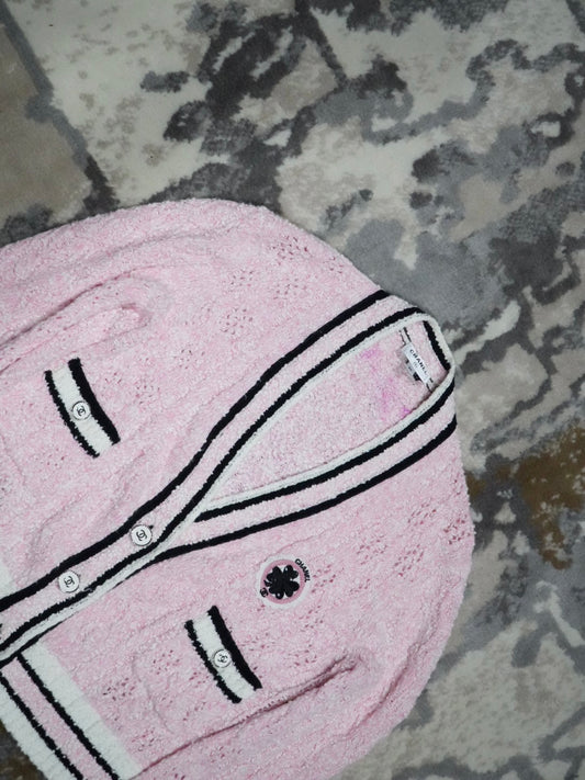 Chanel Pink 24P Tweed Button-Up Cardigan