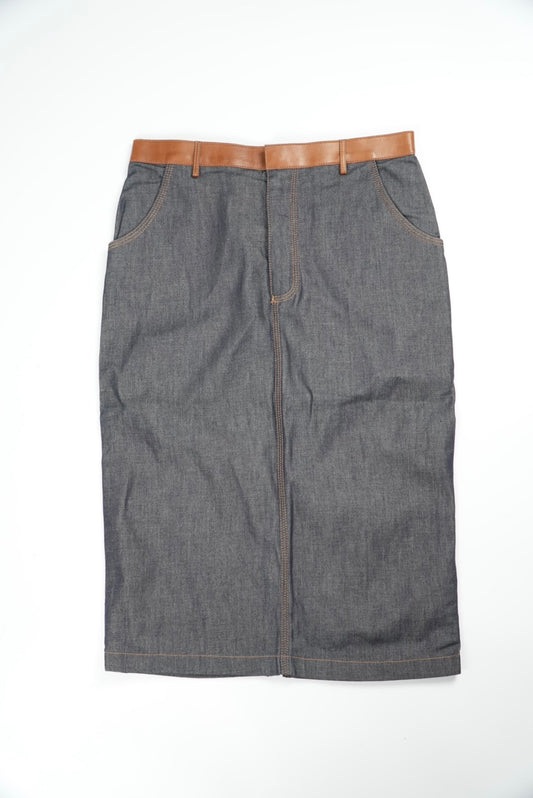 Gucci Denim Lamb Leather Tight Knee-Length Skirt