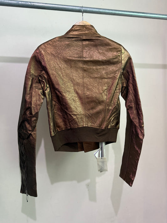 Rick Owens Bronze Funnel Neck Leather Jacket