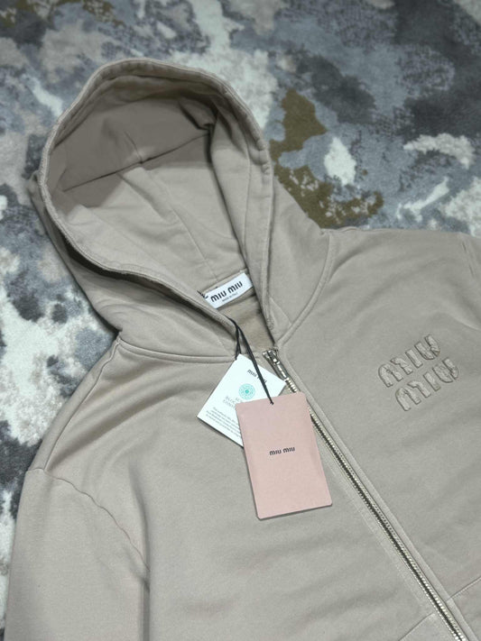 Miu Miu Albino Garment-Dyed Cotton Fleece Hoodie Jacket