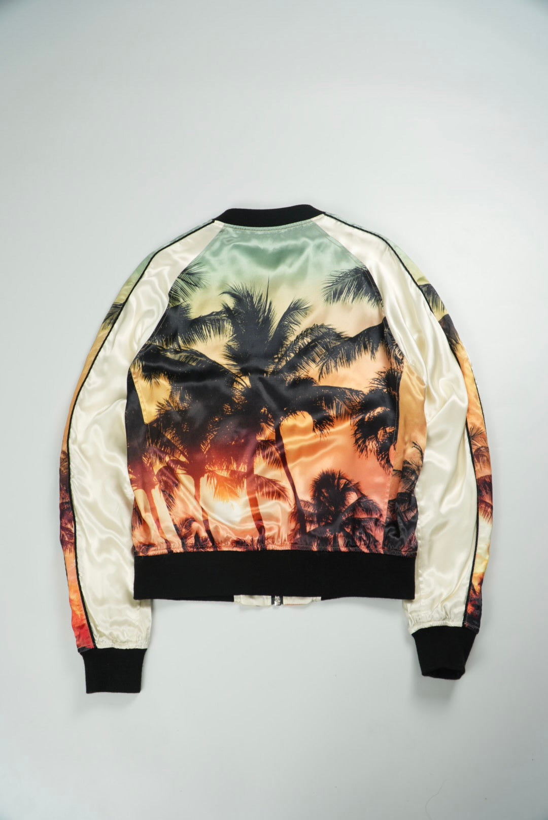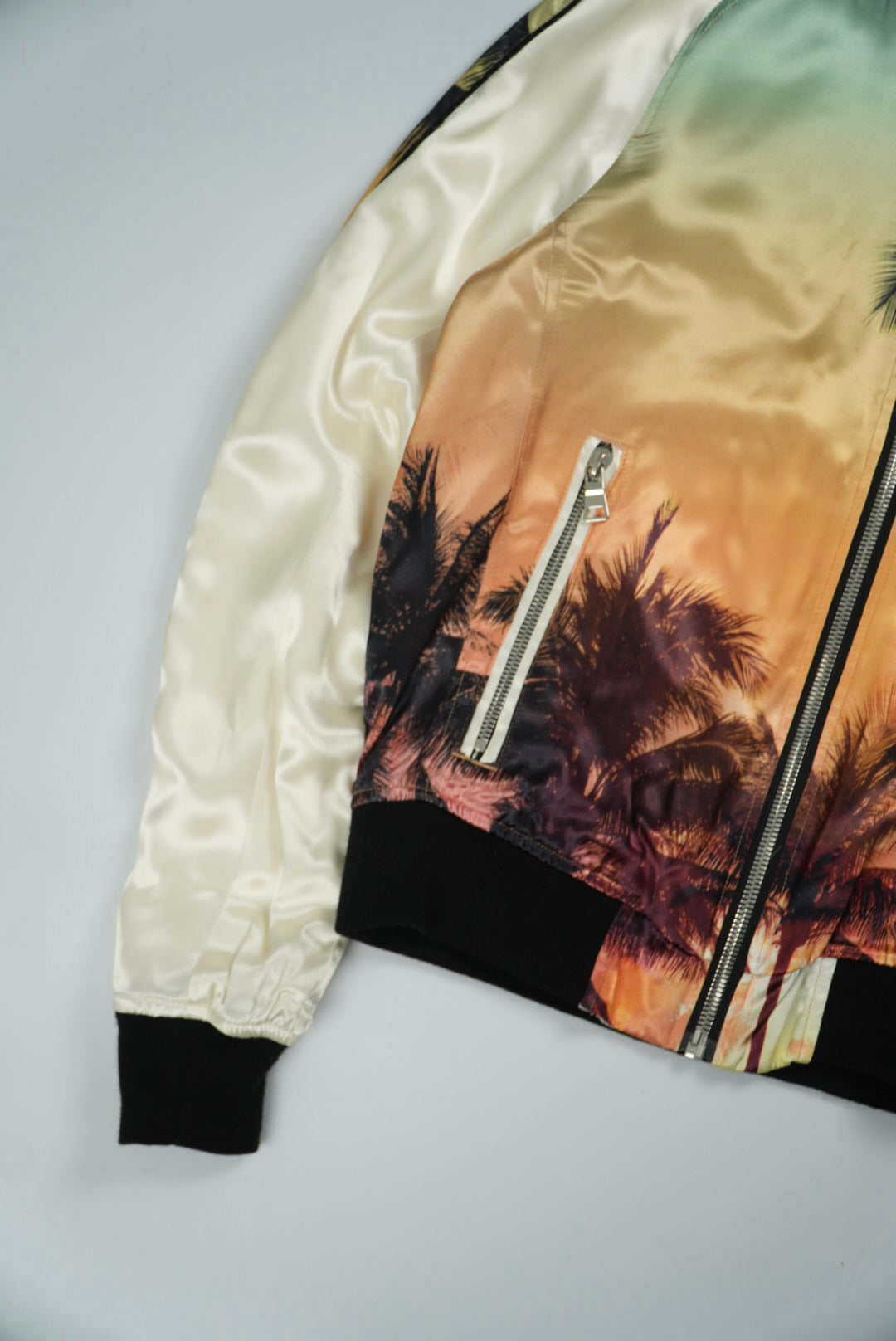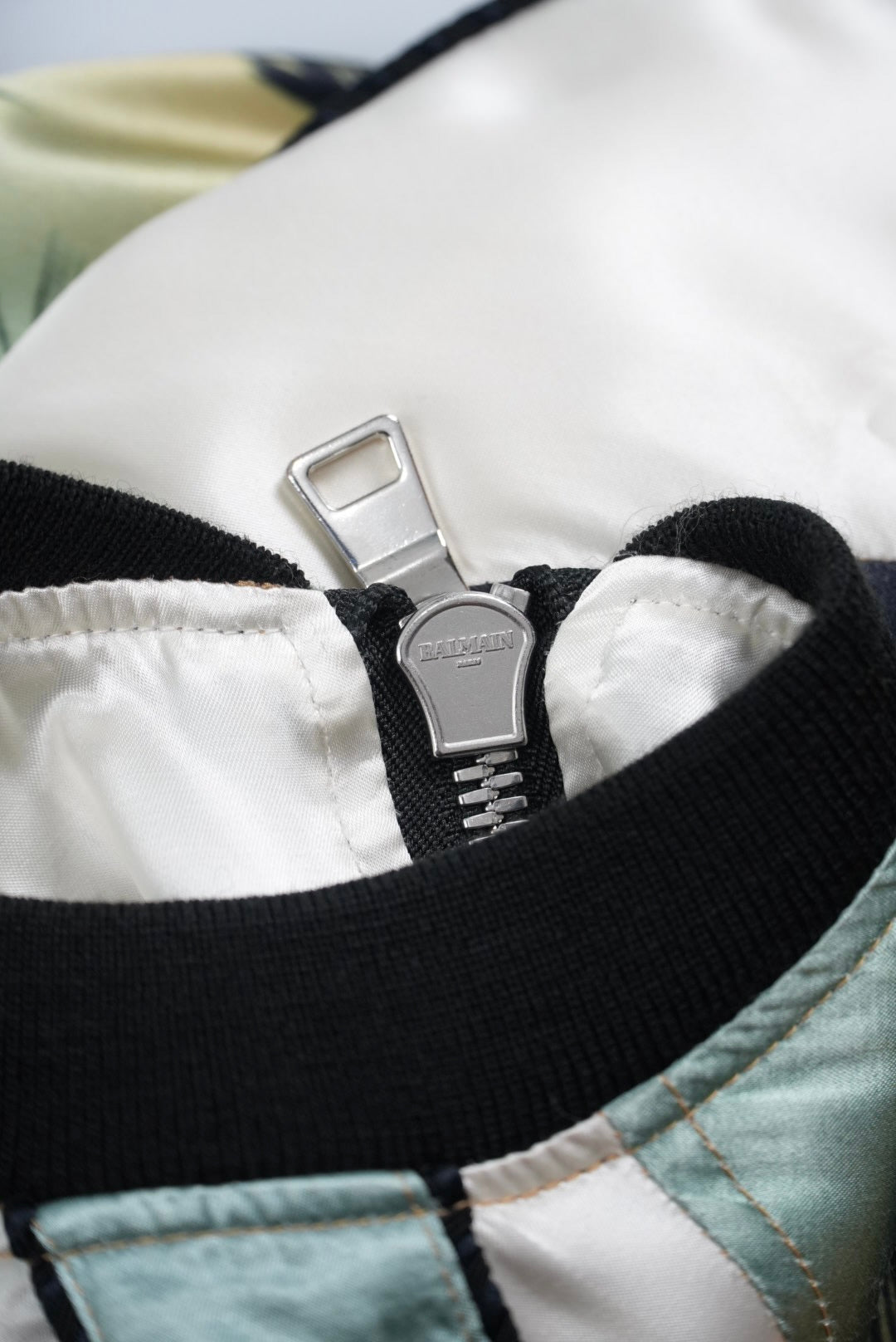 Balmain Palm Tree-Print Satin Bomber Jacket