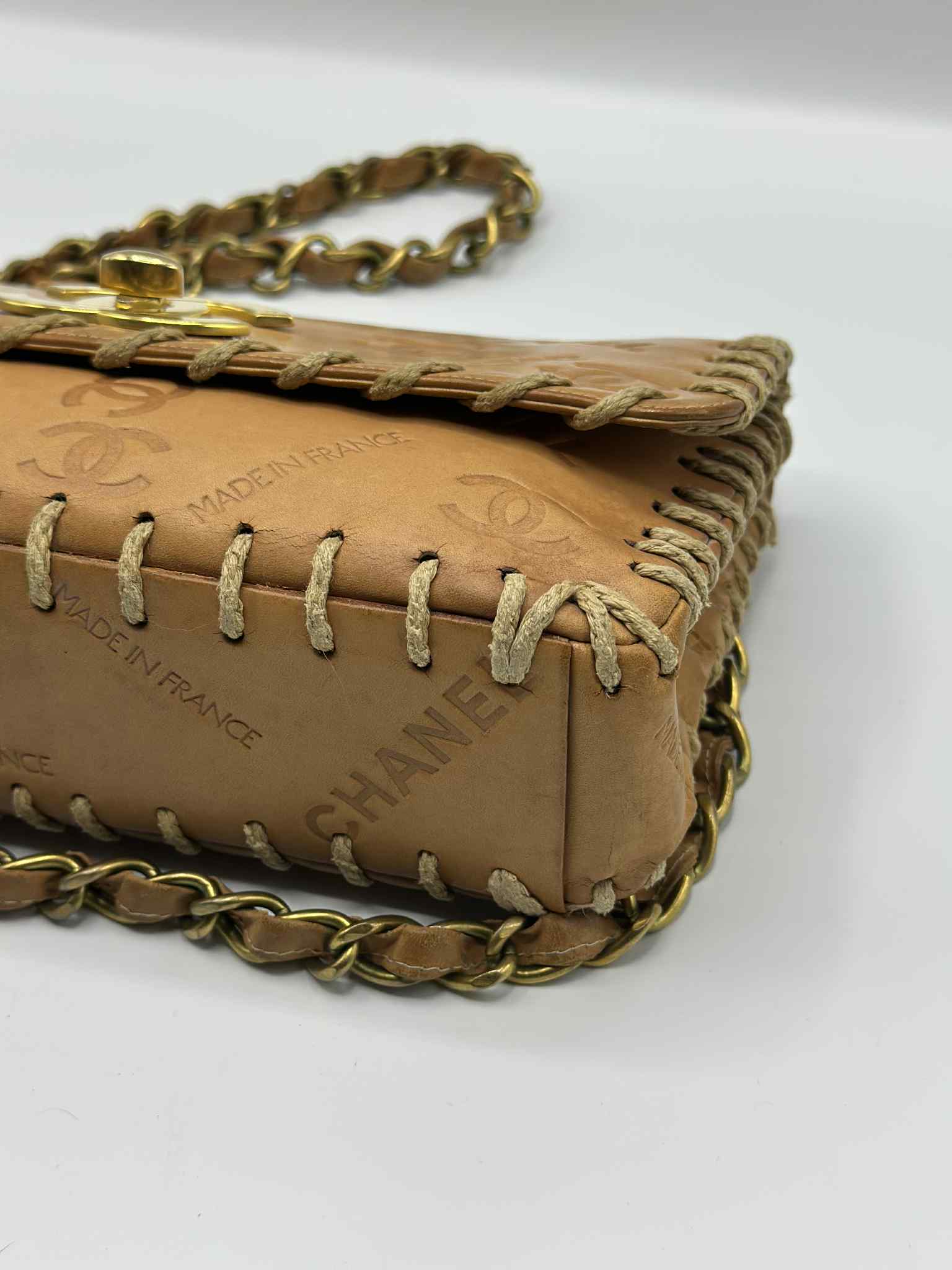 Chanel Debossed Logo Calfskin Half Flap Gold Coco Mark