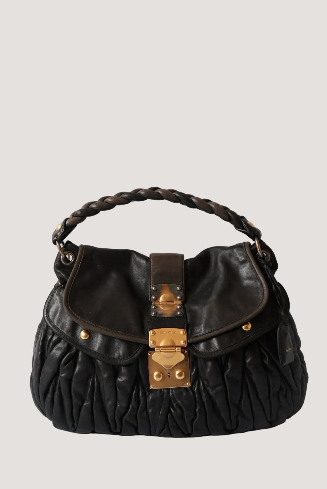 Miu Miu Black Nappa Matelasse Coffer Hobo Bag