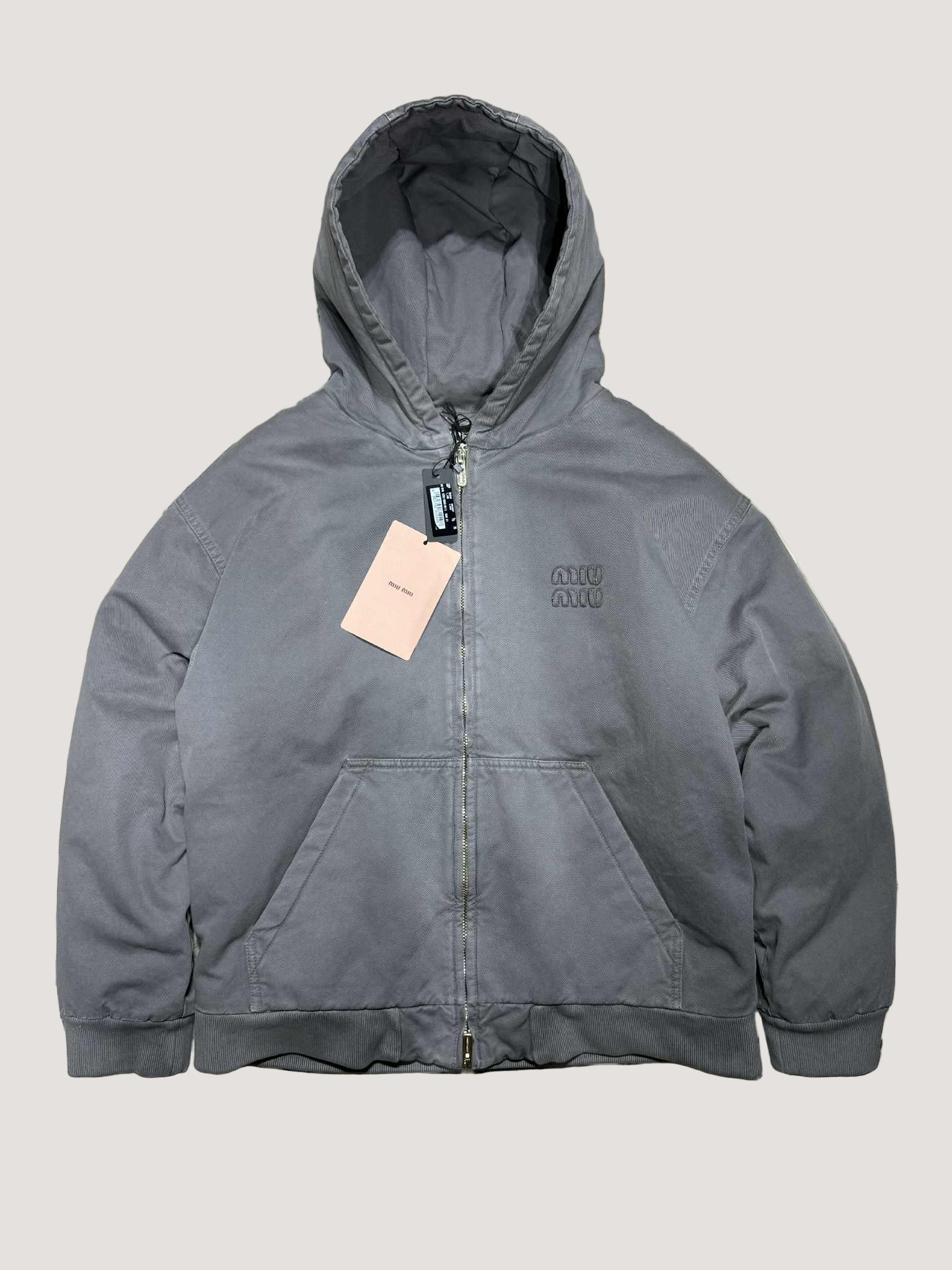Miu Miu Garment-Dyed Blouson Jacket With Embroidered Logo
