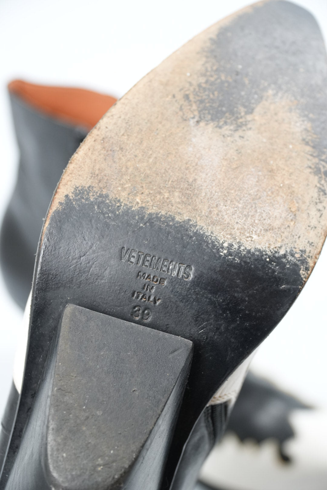 Vetements Black/White Flame Wedge Leather Texan Ankle Boots