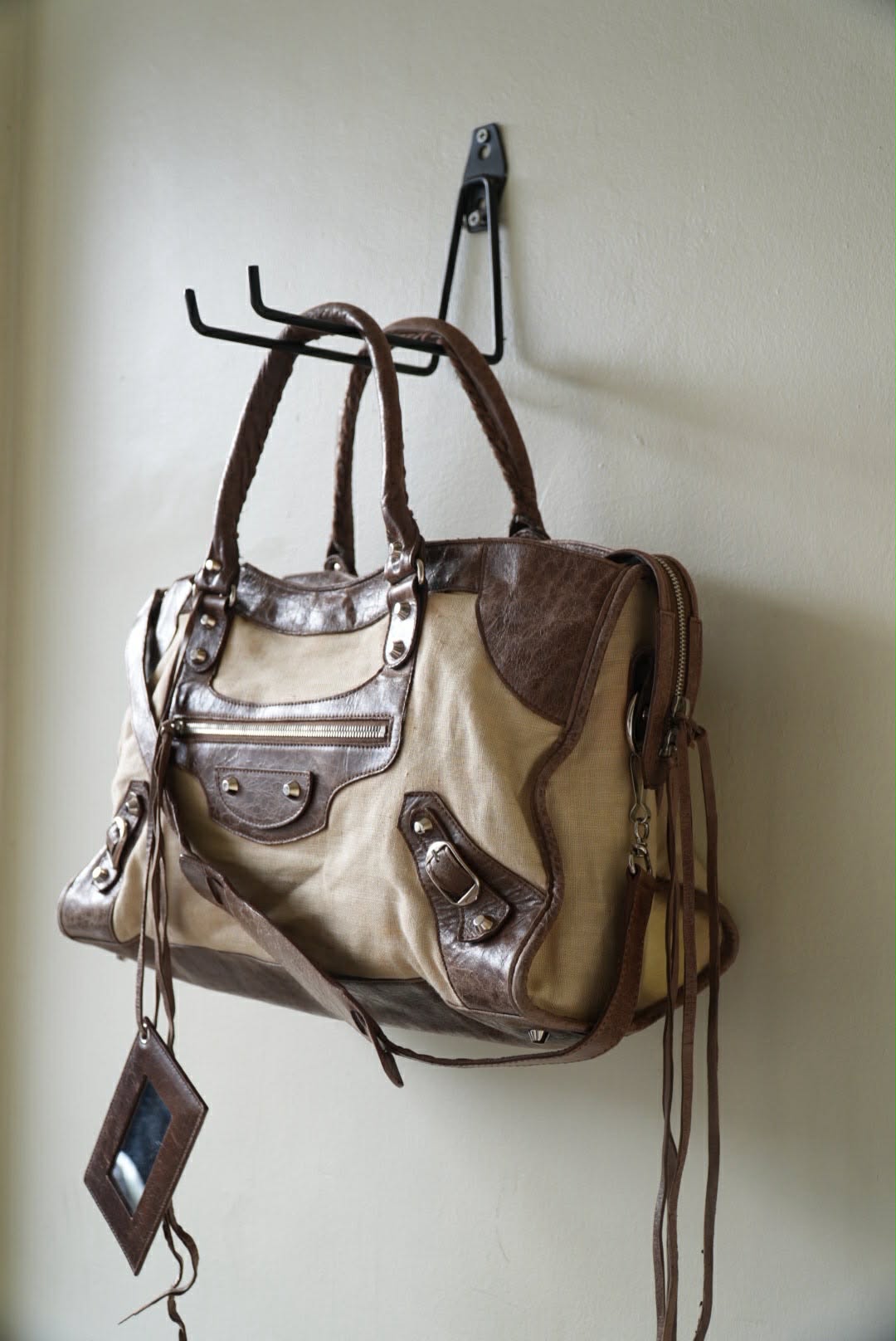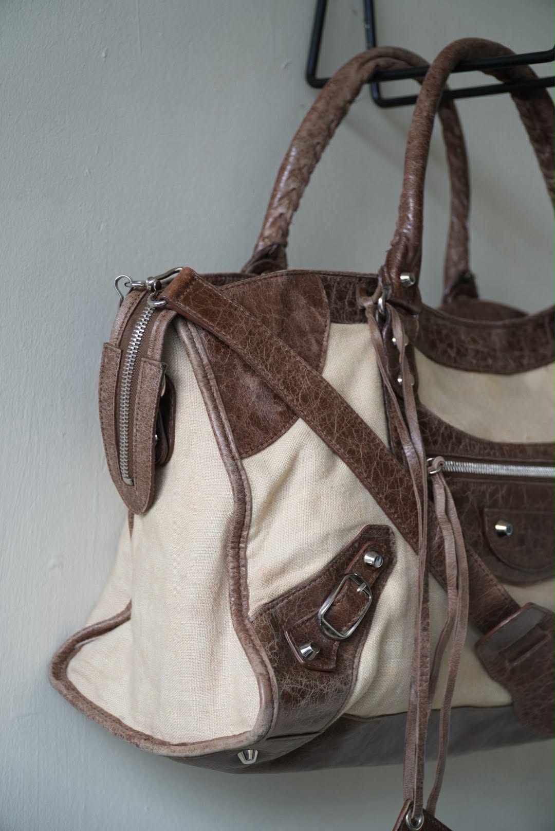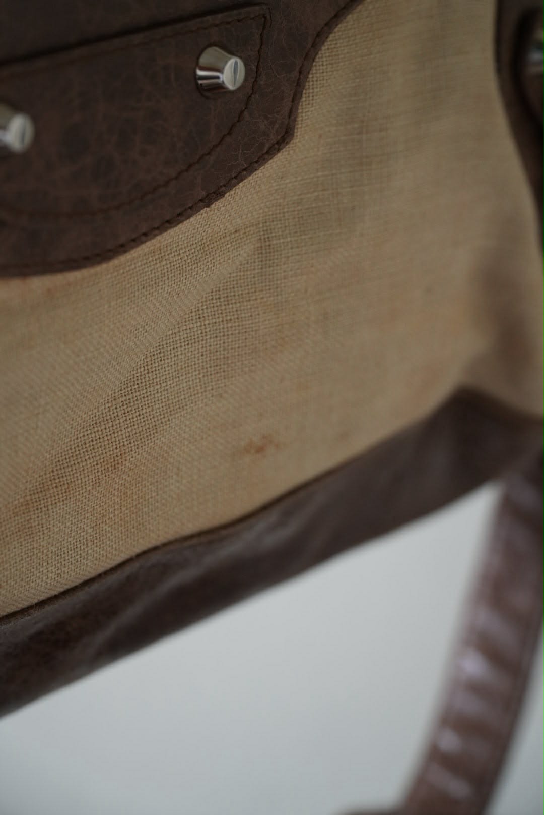 Vintage Balenciaga Brown Natural Linen Truffle City Bag